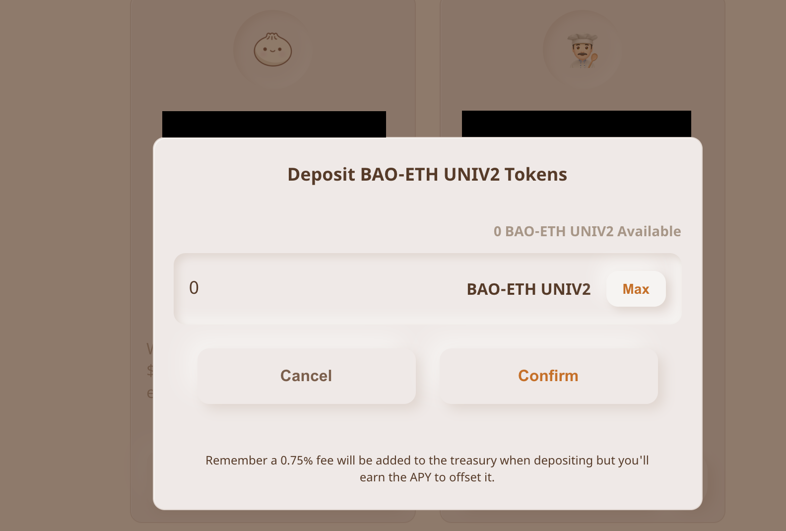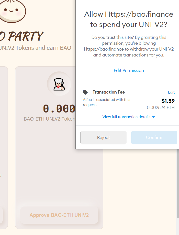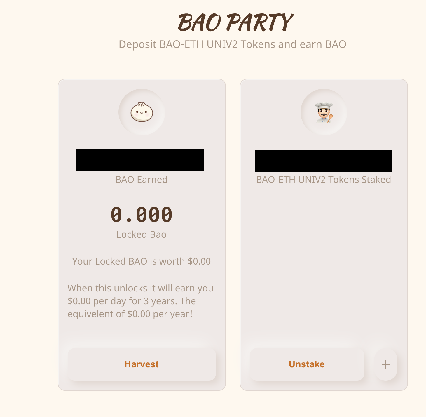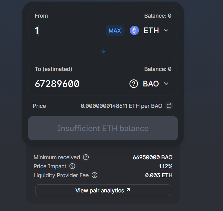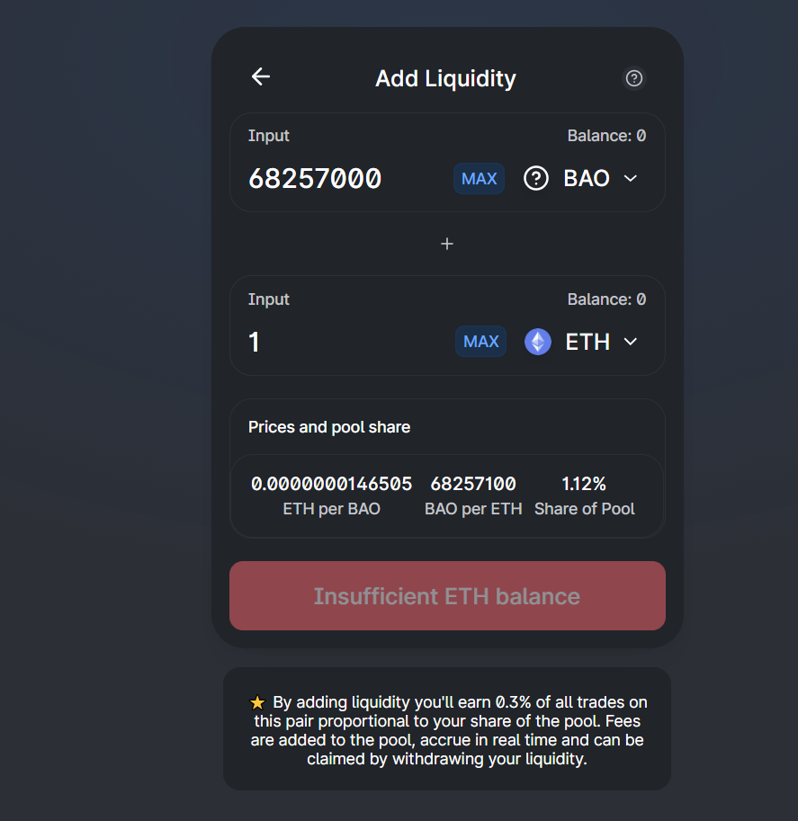 WARNING: This is an advanced operation. You should have staked/farmed at least one pool and gone through process of becoming a liquidity provider. You should have some ETH to buy BAO. You should understand you’ll probably lose all of your capital.